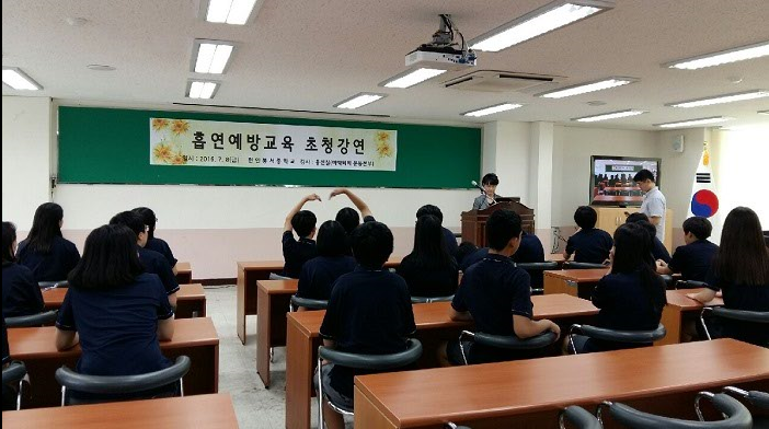 2016년 7월 8일 (금) 13시05분~15시50분 천안 봉서중학교에서 , 홍선실 강사가 음주흡연에 대한 주제로 639명의 아이들에게 약물오남용 예방 강의를 진행하였다.